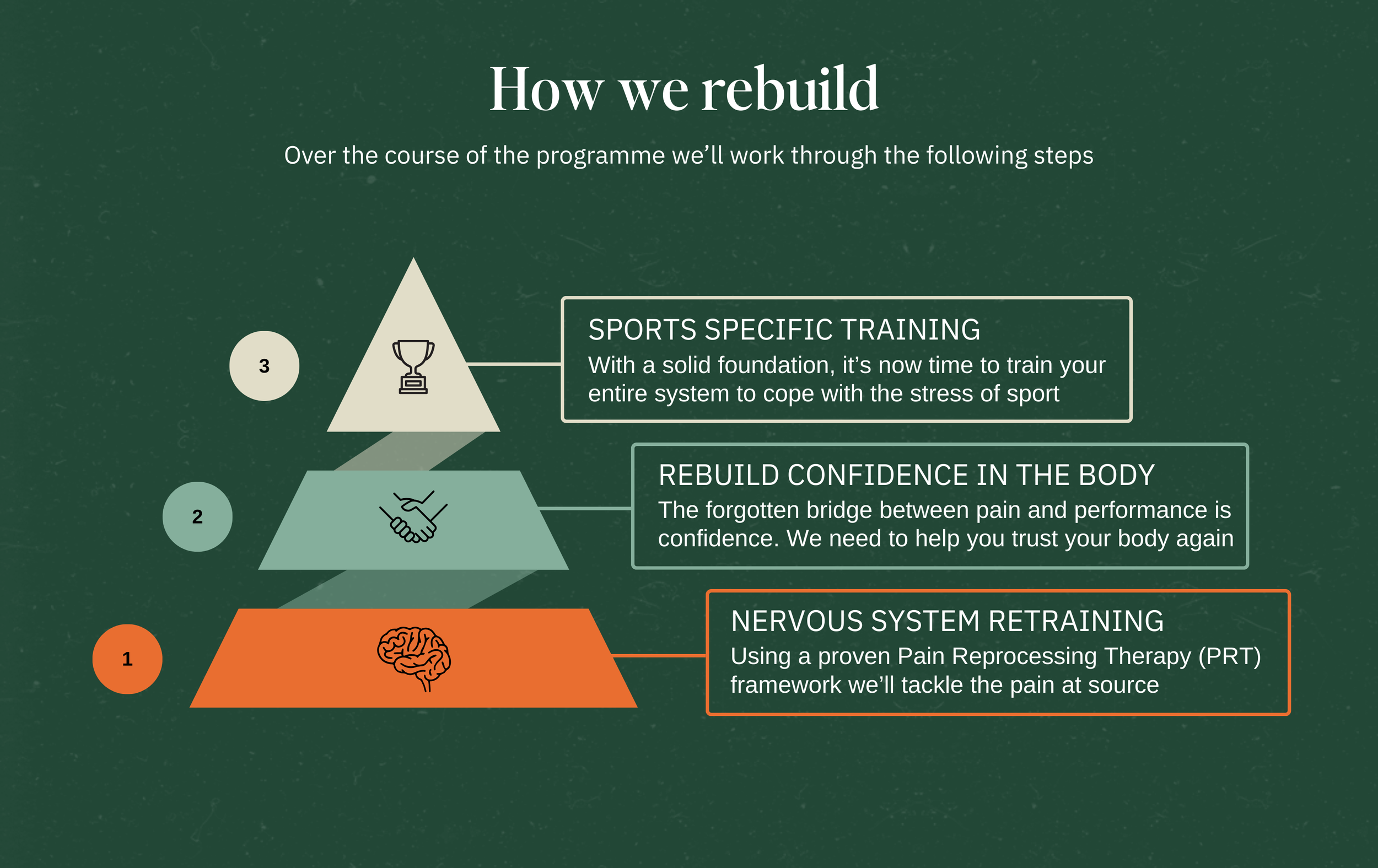 You need an approach that looks at you as one complete person and is built using the science of persistent pain & optimised to get you back to sport.